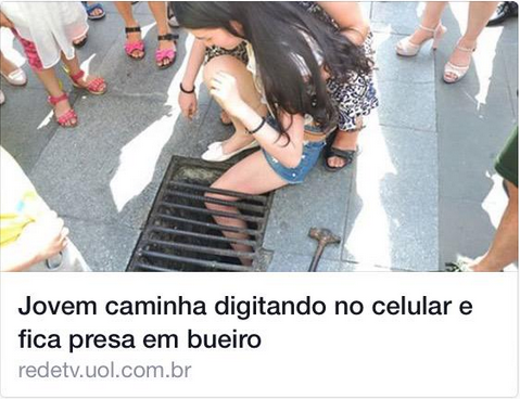 Jovem caminha digitando no celular e fica presa no banheiro