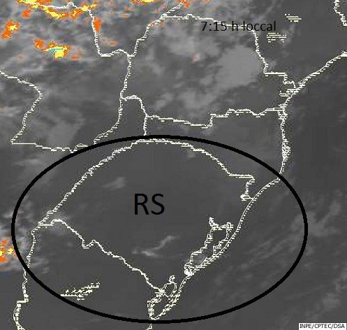 Na imagem de satélite temos em destaque o RS que mostra poucas nuvens no começo da manhã desta sexta #gauchahoje