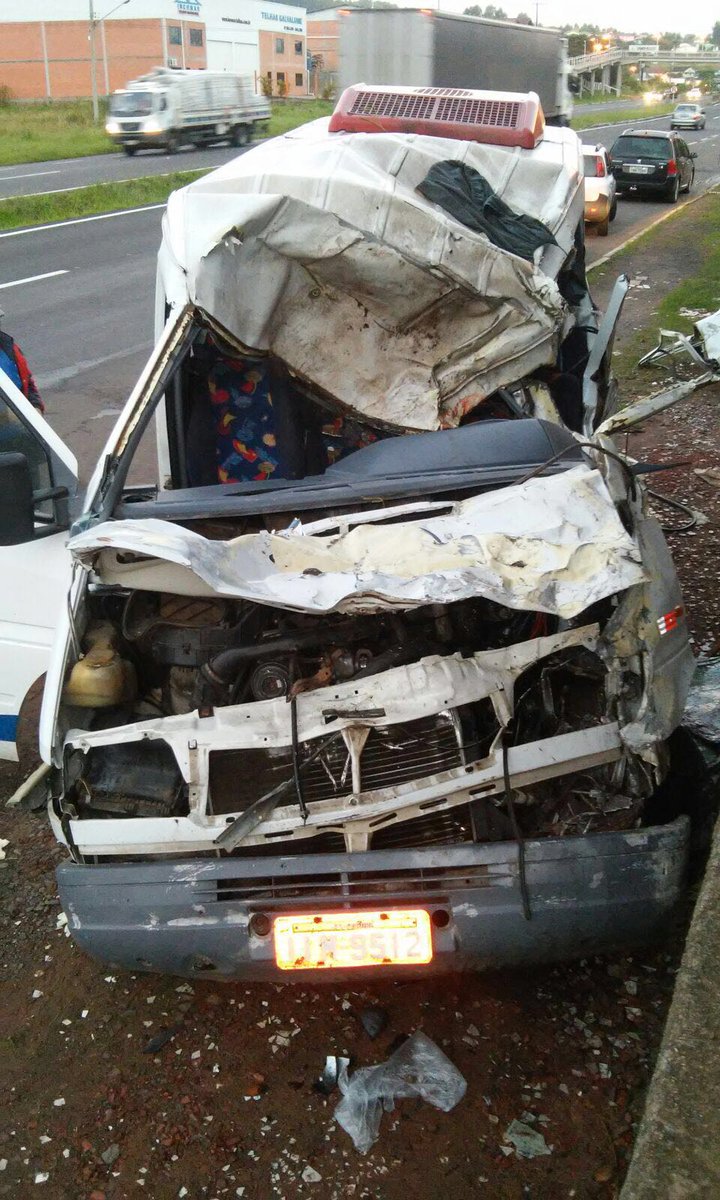 Van envolvida no acidente da RS-239 ficou destruída. Foto do ouvinte Vilmar de Jesus @RdGaucha