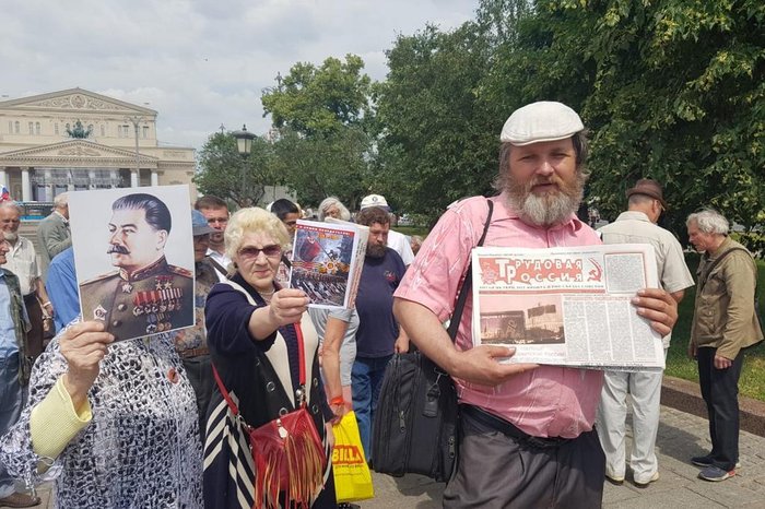 Pouco mais de 26 anos do fim da União Soviética, simpatizantes do comunismo aproveitaram a tarde deste domingo (24) para fazer uma manifestação em apoio às ideias do ex-ditador Josef Stalin, que liderou o país entre 1922 e 1953. A passeata silenciosa, promovida por cerca de quarenta pessoas, aparentemente entre 60 a 70 anos, contrastava com o ambiente de festa pela Copa do Mundo, em meio à Praça da Revolução, um dos principais pontos da região central de Moscou.