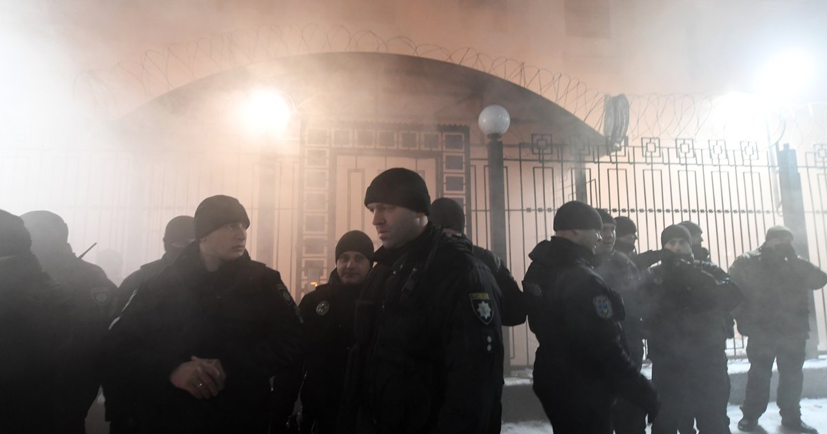 Embaixada russa foi alvo de ataque em Kiev | Foto: Segei Supinski / AFP / CP