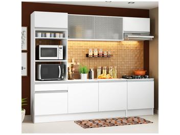 A Cozinha Completa G20088 Madesa Ametista é uma cozinha pensada nos mínimos detalhes. A cozinha é na cor branca fosca, muito moderna e combina em ambientes modernos, vintage/retro ou coloridos. Seu aéreo com portas de vidro agrega beleza e sofisticação. Contempla o tampo do balcão de pia que pode ser removido para a colocação de uma pia com as medidas de até 120x52 cm. Já o balcão para cooktop tem 60x52cm e segue com tampo que pode ser recortado para a colocação do cooktop. O paneleiro e o balcão de pia são montados juntos conferindo maior estabilidade. Suas 08 portas e uma gaveta tornam seu trabalho para guardar os utensílios de cozinha e compras do mercado muito mais fácil.