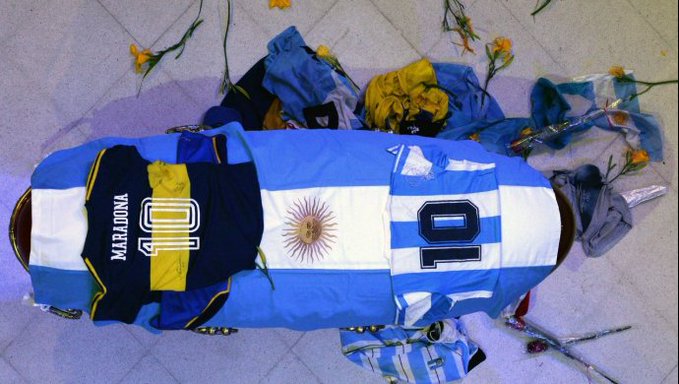 A polícia chegou a utilizar bombas de gás para conter os torcedores na Plaza de Mayo, em frente à Casa Rosada, onde acontece o velório do ex-jogador. Inicialmente, evento encerraria às 16h, mas foi adiado por mais três horas. Por cerca de 10 segundos, torcedores podem caminhar rapidamente em frente ao caixão, onde deixam flores e camisas em homenagem ao craque argentino.