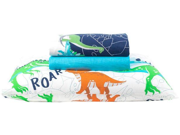 A hora do descanso é muito importante na infância e para torná-la ainda mais divertida para os pequenos, a Santista apresenta o jogo de cama infantil Sauro, linha Royal, tamanho solteiro, com três peças. Confeccionado com tecido 100% algodão, esse jogo é composto por um lençol de cima com bainha e ourela, um lençol de baixo com elástico e uma fronha na cor azul. Assim, os sonhos serão mais agradáveis e animados.