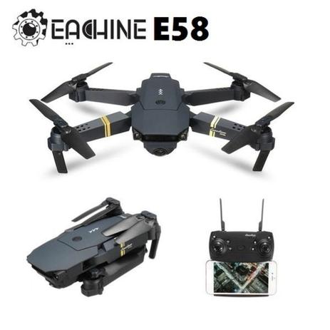 DRONE EACHINE E58 COM CÂMERA HD 2.4GHZ - BLACKCompacto, versátil, robusto e eficiente são apenas alguns dos adjetivos para este Drone que promete revolucionar o mercado no segmento. Se você está procurando por um Drone potente e custo-benefício abaixo dos R$600,00 acaba de encontrar a melhor opção. Vou te contar o porquê:Este é um Drone esportivo de extrema qualidade tecnológica e acabamento, conta com lente grande angular em sua câmera frontal HD, sendo ideal para os usuários iniciantes que só querem registrar seus momentos em viagens, como também, para os mais avançados e amantes de aventura, que buscam sempre lugares/momentos inusitados e irados para fazer suas filmagens e fotografias.Eachine é uma marca famosa no mercado de Drones, Carros e Barcos RC, que tem o compromisso de combinar a criatividade com a tecnologia para produzir produtos de alta qualidade com os melhores preços possíveis. BENEFÍCIOS:- Com os braços dobráveis se torna pequeno e fácil de transportar, cabendo na palma da mão.- Com a função de modo de espera altitude proporciona um voo estável.- Com a função Wi-Fi pode ser conectado via APP para tirar fotos, vídeo, transmissão em tempo real de imagem direto na tela do celular.- Com o modo de Headless não há necessidade de ajustar a posição da aeronave antes de voar.- Com um botão que possui função “Retornar” torna fácil de encontrar o caminho de casa.- Tecnologia de 2,4 GHz adotada para não ter interferência.- Ele tem velocidade de voo de 3 níveis que pode ser alternada, o que torna a pilotagem mais divertida e segura.ITENS INCLUSOS:1x Drone E58 Preto2x Hélices Reservas4x Protetores de Hélice1x Bateria Recarregável1x USB (carregamento)1x Manual do usuário1x Controle Remoto (Rádio)