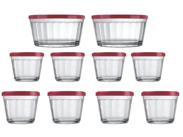 Você gosta de cozinhar? E me diz uma coisa, quem aqui que é amante de cozinha não gosta de ter vários utensílios incríveis que vão facilitar na hora de preparar os seus alimentos? Pois então, o conjunto de tigela da marca Copo Americano é ideal pra você usar na cozinha da sua casa. Eles servem para guardar comidas frias ou quentes. São feitos de vidro sodacal e esse conjunto contém 10 peças, sendo elas 02 tigelas de 600ml, 04 tigelas de 350ml e 04 tigelas de 150ml. Tem formato redondo e é cristalino com tampa vermelha. Lindo utensílio também para a decoração da sua cozinha. Vai ficar sem um conjunto desses? Aproveita!