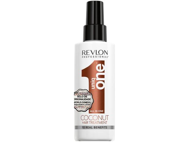 O Leave-In Capilar Uniq One 150ml Revlon é um spray sem enxágue perfeito para todos os cabelos. Sua fórmula oferece tudo o que o seu cabelo necessita em um só produto com 10 efeitos reais e uma deliciosa fragrância Côco Frutal: 1- Reparação para cabelos secos e danificados. 2- Brilho e controle do frizz. 3- Proteção contra o calor. 4- Suavidade e toque sedoso. 5- Proteção da cor/com filtros UVA e UVB. 6- Facilita a escovação e o uso da prancha. 7- Efeito desembaraçador surpreendente. 8- Mantém o penteado por mais tempo. 9- Previne as pontas duplas. 10- Realça o volume natural do cabelo.