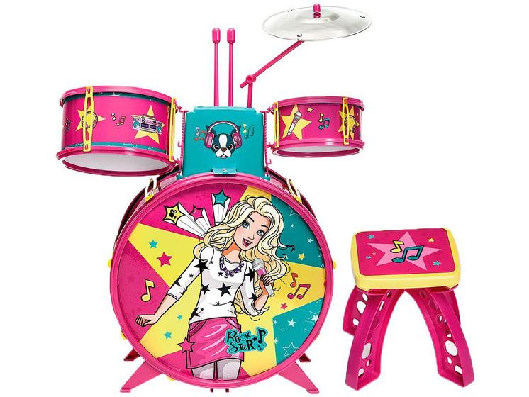 O contato com música na infância traz benefícios para o desenvolvimento e aprendizagem dos pequenos. Cada vez mais estudos comprovam que crianças que aprendem música são mais inteligentes, tem melhor vocabulário e capacidade de entender e responder perguntas. Por isso mesmo, não precisa esperar seu filho ter idade para segurar um instrumento específico para começar sua educação musical. Até os bebês tem vez na hora de começar a fazer barulho, basta escolher o brinquedo ideal para ele se divertir. A bateria de brinquedo Barbie Fabulosa é uma ótima opção para a criançada. O brinquedo da marca Fun é lindo e vem com diversos acessórios para a garotada criar seu próprio som.