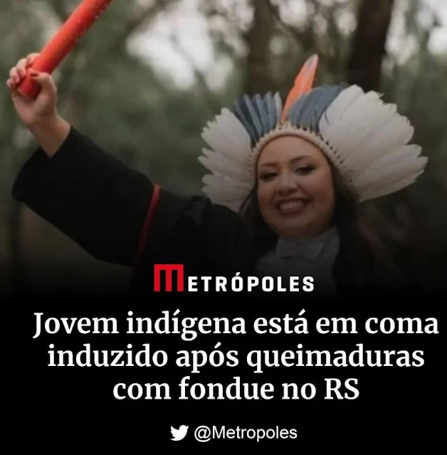 A indígena Jaqueline Tedesco, de 26 anos, natural de Rio Grande, no Rio Grande do Sul, está em coma induzido após ter 30% do corpo queimado em acidente em um restaurante de fondue. Ela está no hospital geral Associação de Caridade Santa Casa, em Rio Grande, sem previsão de alta de acordo com laudo divulgado nesta segunda-feira (11/3). Ela sofreu graves queimaduras no queixo, braços, seios e mãos, mas não corre risco de vida. O caso aconteceu no sábado (9/3), quando a indígena da tribo Kaingang comemorava a sua formatura em direito na Universidade Federal de Rio Grande (Furg). Jaqueline estava acompanhada do namorado, amigos e familiares. O acidente aconteceu no reabastecimento do rechaud – fogareiro usado para manter a comida quente, o qual continha resquício de chama. Ao portal g1, o namorado da jovem disse que o vestido dela começou a pegar fogo. Segundo o estabelecimento, foi prestada assistência a Jaqueline e também a uma colaboradora, que também se feriu.