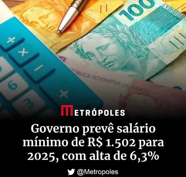 O Projeto da Lei de Diretrizes Orçamentárias (PLDO), enviado ao Congresso Nacional nesta segunda-feira (15/4), prevê salário mínimo de R$ 1.502 para 2025. O aumento representa 6,37% a mais do que o piso de 2024, de R$ 1.412. A quantia segue a nova fórmula estabelecida pela política permanente de valorização do mínimo de Luiz Inácio Lula da Silva (PT). Segundo o governo, o projeto terá meta de déficit zero para o próximo ano e não de superávit, como projetava previsão do ano passado. O PLDO é a base para o segundo orçamento federal elaborado pelo terceiro governo de Lula. O projeto será detalhado nesta segunda por secretários do Ministério do Planejamento e Orçamento e do Ministério da Fazenda. O PLDO apresenta as metas e as prioridades da administração pública federal e estabelece as diretrizes de política fiscal e respectivas metas, em consonância com trajetória sustentável da dívida pública.