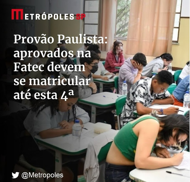 Os estudantes aprovados nas unidades da Faculdade de Tecnologia do Estado (Fatec) pelo Provão Paulista têm até esta quarta-feira (8/5) para realizar a matrícula no site do Centro Paula Souza. A exigência é para os alunos convocados na primeira chamada para cursos do 2º semestre de 2024. Quem não fizer a matrícula dentro do prazo perde o direito à vaga, que será disponibilizada para outro candidato na segunda chamada. Os candidatos devem enviar os seguintes documentos para se registrar na instituição: Certificado de conclusão do Ensino Médio Histórico Escolar completo do Ensino Médio Carteira de Identidade (RG) com foto, dentro da validade CPF ou documento de identidade contendo o número de CPF Foto 3X4 recente, com fundo neutro; Documento de quitação com o serviço militar ou Certificado de Dispensa de Incorporação (CDI), para o candidato brasileiro maior de 18 anos, do sexo masculino A lista de aprovados e a classificação de cada vestibulando está disponível no site provaopaulistaseriado.vunesp.com.br.
