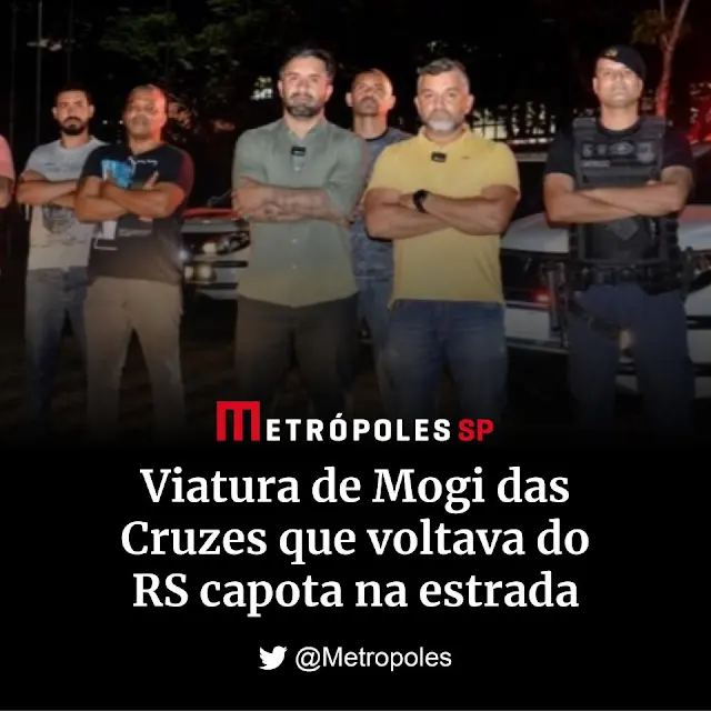 Uma viatura da Guarda Civil Metropolitana (GCM) de Mogi das Cruzes, na Grande São Paulo, capotou na tarde desta segunda-feira (13/5) na BR-101 em Palhoça, na Grande Florianópolis (SC). Os ocupantes do veículo voltavam do Rio Grande do Sul (RS), onde participaram de trabalhos de resgate em municípios afetados pelas enchentes. De acordo com informações da Prefeitura de Mogi das Cruzes, os servidores que estavam no carro acidentado não ficaram feridos, estão bem e em viagem de volta a São Paulo. Chovia muito no momento do acidente. Um veículo que trafegava à frente da viatura perdeu o controle, possivelmente por aquaplanagem. Ao tentar desviar do veículo e evitar a colisão, o carro da GCM acabou colidindo com o guard rail e capotando. Em nota, a prefeitura de Mogi ressaltou que a manobra evitou um acidente maior que poderia trazer vítimas, já que a viatura não atingiu o veículo que vinha à frente.
