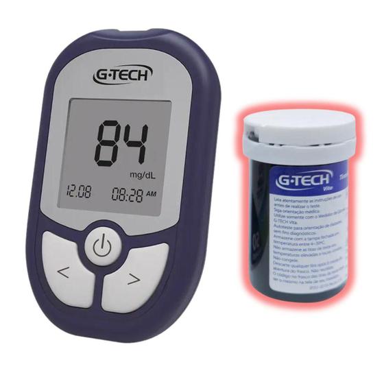 Kit Aparelho Medir Glicose G-tech Vita + 50 TirasBenefícios do Produto:- Medição Rápida e Precisa: Com as Tiras de Glicemia G-tech Lite, você obtém resultados confiáveis em segundos, permitindo que você monitore sua glicose de forma eficiente e tome as medidas necessárias.- Fácil Utilização: As tiras são projetadas para serem extremamente fáceis de usar, mesmo para quem não possui experiência prévia. Basta inserir a tira na máquina, aplicar uma pequena gota de sangue e pronto Você terá a leitura precisa da sua glicose.- Alta Compatibilidade: As Tiras de Glicemia G-tech Lite são compatíveis com o medidor G-tech Lite, garantindo uma experiência perfeita e sem complicações.- Quantidade Ideal: Com esse pacote de 50 tiras, você terá um suprimento duradouro para suas medições diárias, proporcionando praticidade e economia.Especificações:-compatível com o medidor G-tech Lite.-fácil utilização, mesmo para iniciantes.-resultados rápidos e precisos em segundos.-embalagem com 50 tiras, oferecendo um suprimento duradouro.-validade longa para garantir a qualidade do produto.Garantia de Qualidade:Segurança e Satisfação:- Lembre-se de sempre consultar um profissional de saúde para orientações específicas relacionadas ao monitoramento da sua glicose.CONTEÚDO DO KIT:- 01 Medidor de Glicose G-TECH Vita- 50 Tiras glicemiaDATA DE VALIDADE 04/2025