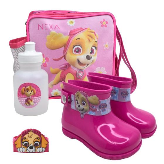 Link para comprar: https://www.magazinevoce.com.br/magazinelucioborges/kit-galocha-infantil-e-mochila-infantil-patrulha-canina-rosa-e-squeeze-nexa/p/ak3f9512eb/md/ginf/