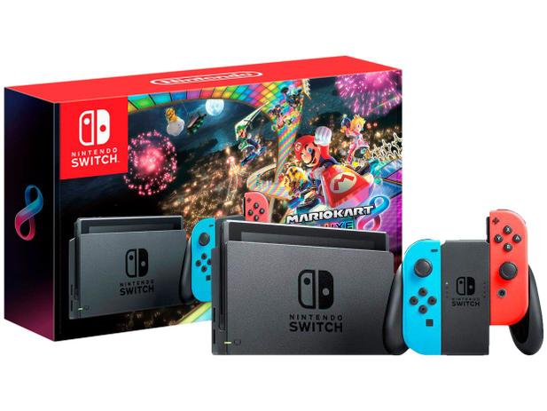 Link para comprar: https://www.magazinevoce.com.br/magazinelucioborges/nintendo-switch-32gb-2-controles-mario-kart-8-deluxe-3-meses-de-nintendo-online/p/235767500/GA/CONI/