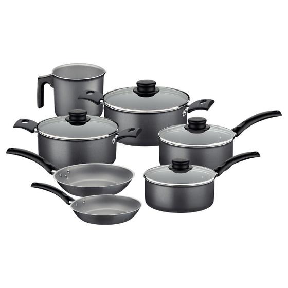 Jogo de Panelas Tramontina Turim em Alumínio com Revestimento Interno e Externo em Antiaderente Starflon Max Chumbo 7 Peças