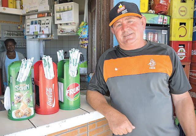 O acessório faz falta no quiosque de Conceição principalmente na hora de servir a bebida típica de beira de praia. “Para a água de coco é bem necessário”, ressalta. Embora somente o canudo plástico esteja proibido na cidade litorânea, Conceição se antecipa e procura tirar de circulação também os copos plásticos. Deixa disponíveis em uma bandeja, ao lado do balcão, os copos de vidro que sempre agradam o consumidor na hora de degustar uma cerveja bem gelada.
