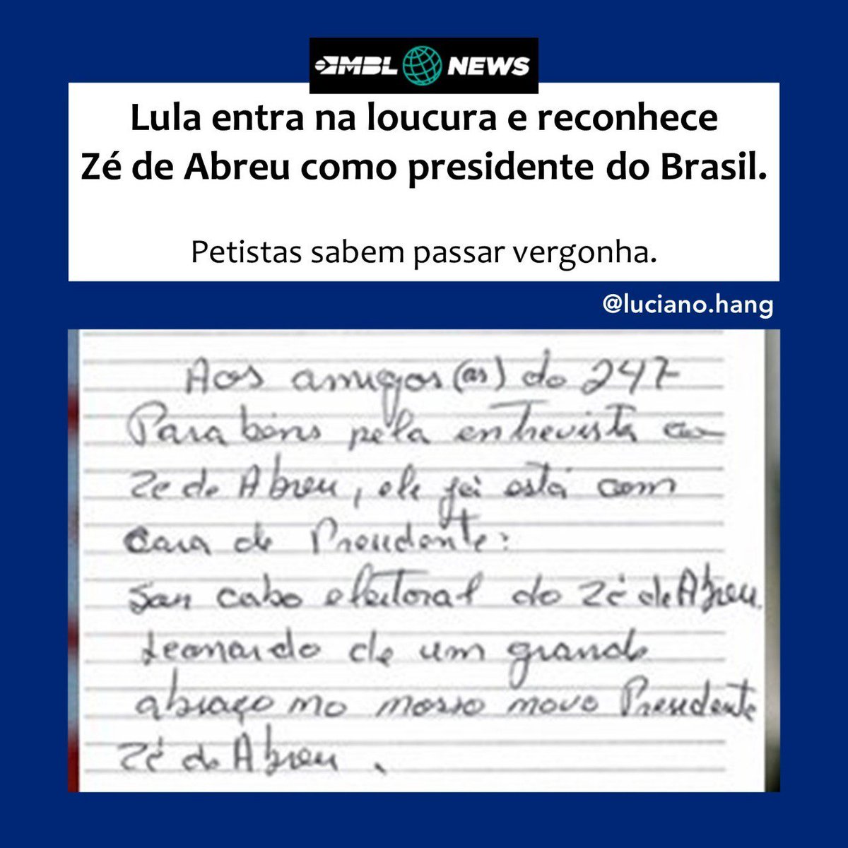 Acho o Lula tá tomando pinga na cadeia. O ex-presidente reconhece o ator Zé do Breu como Presidente do Brasil. O ator se autoproclamou presidente para criticar o ato de Juan Guaidó, na Venezuela. Onde este ator trabalha mesmo???